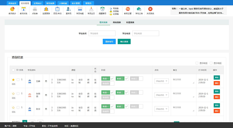 科迅内部ERP全方位监督学员学习进度及成果